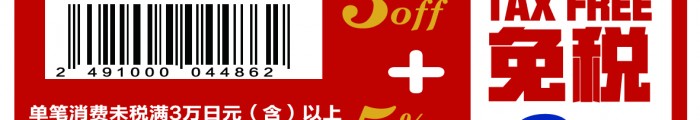 消費30000日元以上,免稅+7%優(yōu)惠 = 最大8.3折